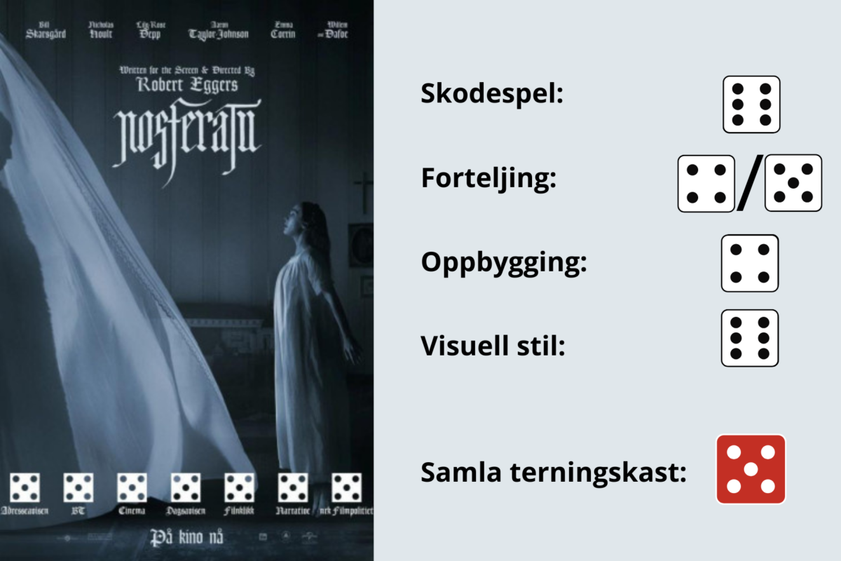 Det er sjeldan me får sjå gode gjenfortellingar no til dags, men Eggers overgår alle forventningar og skaper ein spektakulær versjon av Nosferatu som strålar med nyskaping og kjærleik til det originale verket. Det må han og resten av dei som bidrog til filmen, få ros for.