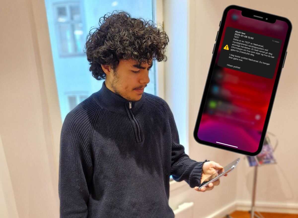 Som dei fleste andre nordmenn fekk han klokka 12 i dag opp naudvarsel på bokmål på mobilen.