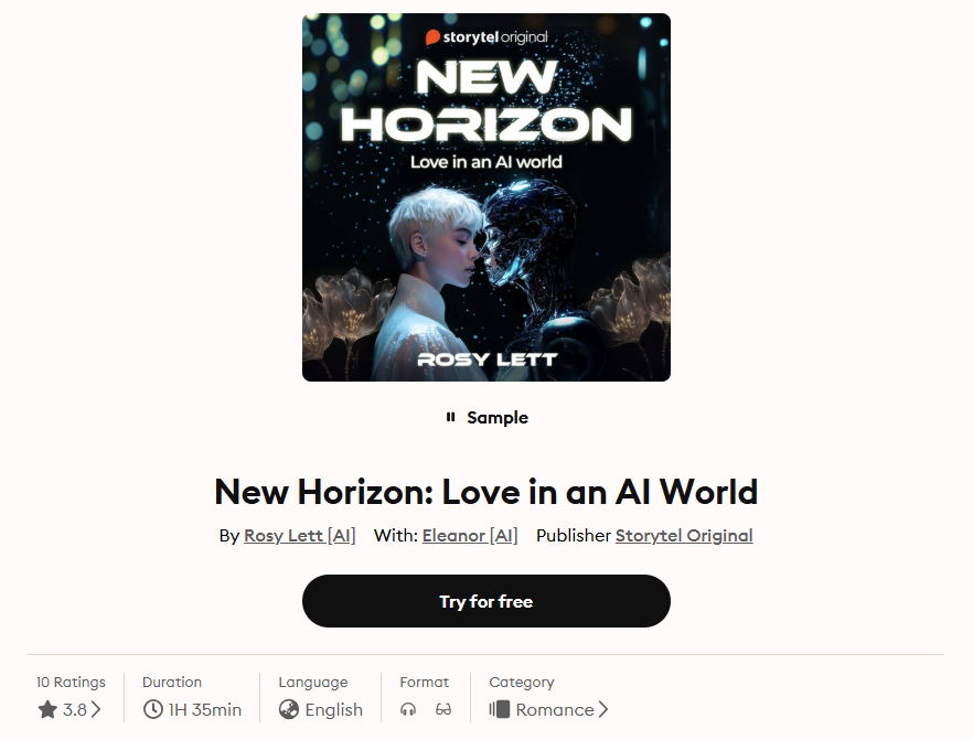 Han har lytta gjennom den engelske lydboka New Horizon, som er ei samling korte noveller frå lydbokappen Storytel. Det spesielle er at forfattaren «Rosy» (22) er kunstig intelligens.