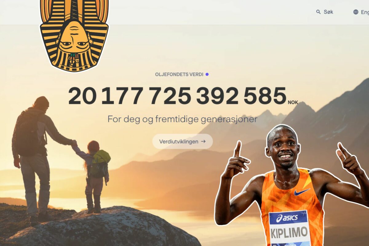 Oljefondet, Kiplimo og ein farao er noko av det som har vore i nyheitsbiletet. Kollasj av Framtida. | Foto: AP Photo/Gregorio Borgia, File. Illustrasjon: Canva. Skjermbilete Norges Bank Inverstment Management