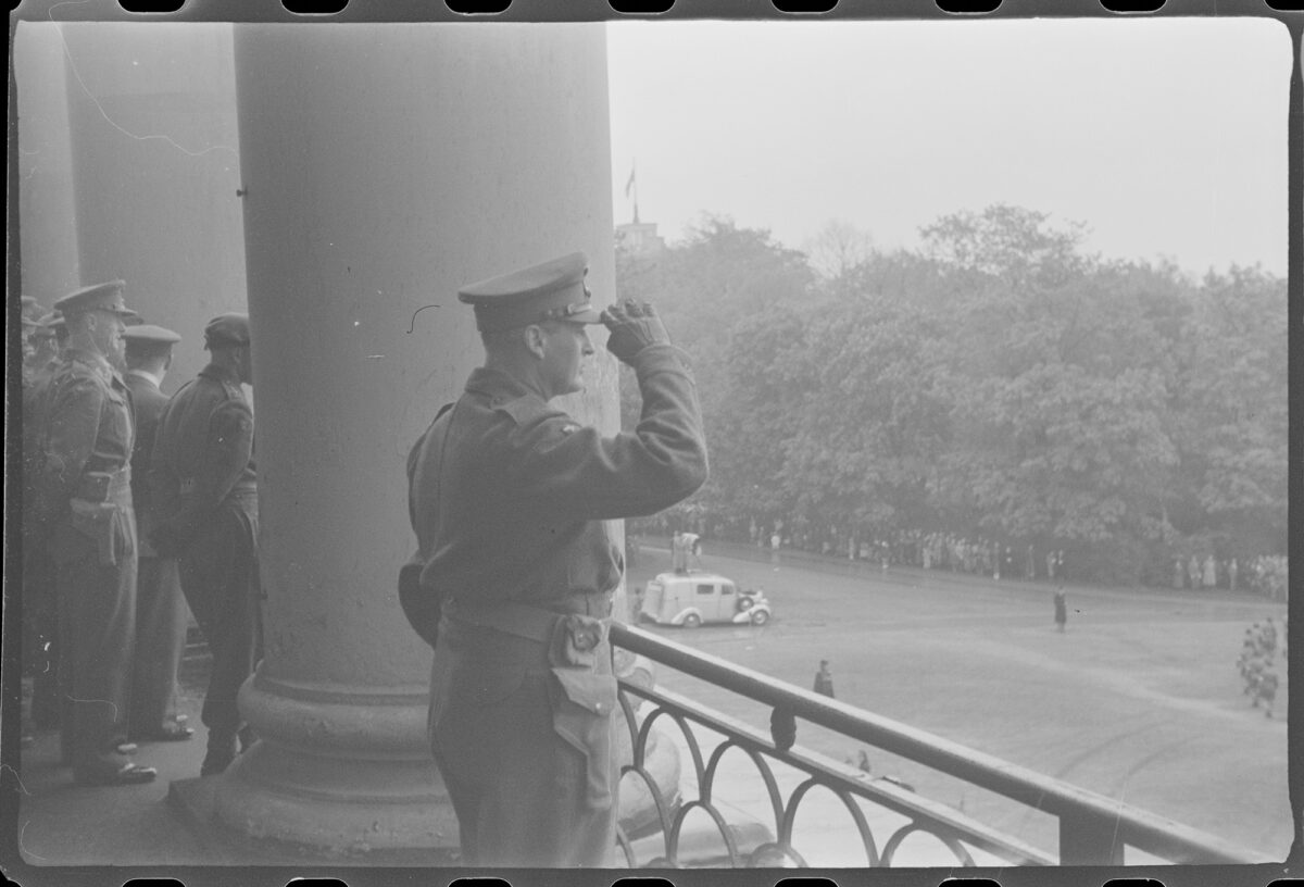 Den 13. mai kom kronprins Olav attende frå eksil i London og helste på folket frå slottsbalkongen, nokre dagar før han stod der på ny og vinka til toget med over 200 000 skulebarn.