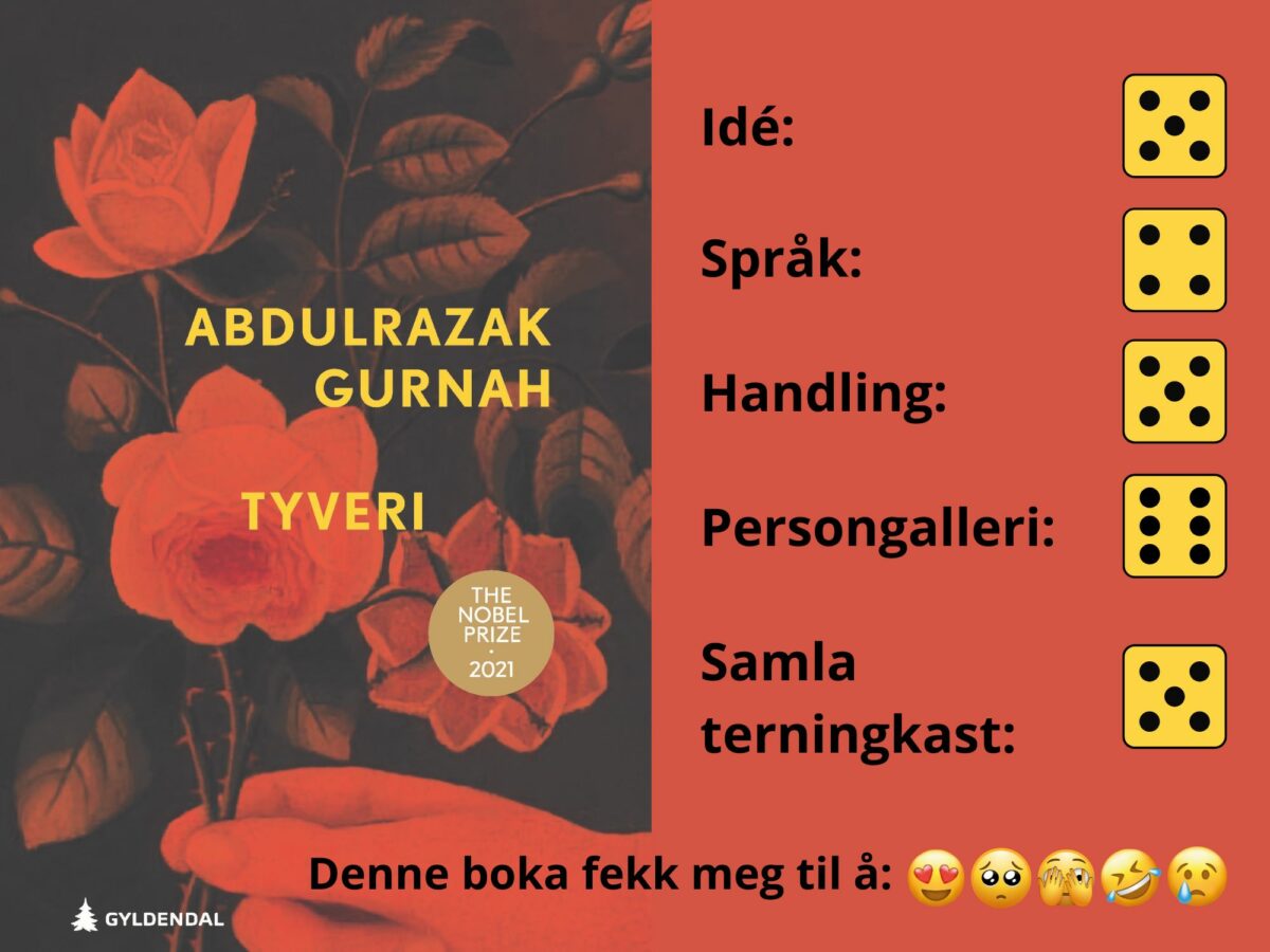 Gurnah har skrive endå betre bøker, og eg trur ikkje at Tyveri kjem til å bli den Gurnah-klassikaren ein må lesa. Boka har sine svake sider. Til dømes er starten litt vel langdryg.