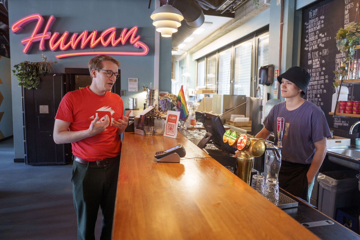 Wattne er bartender og tillitsvald ved serveringsstaden Postkontoret på Tøyen i Oslo. Der har dei tilsette ikkje problem med slik overvaking. Han har sjølv vore med LOs sommarpatrulje ut dei siste vekene og besøkte unge arbeidstakarar for å sjekke arbeidsforholda deira.
