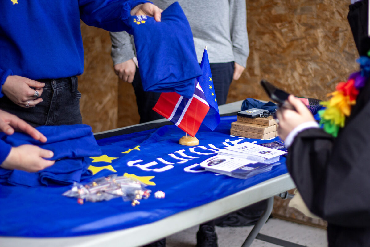Om ein har følgt med litt i norsk politikk, er det ikkje overraskande kor mange EU-flagg ein finn på Unge Venstre sin sommarleir. Europeisk Ungdom har sett opp ein stand under tak, saman med eit par andre organisasjonar, og i løpet av fotballturneringa får dei hanka inn fleire nye medlemar.