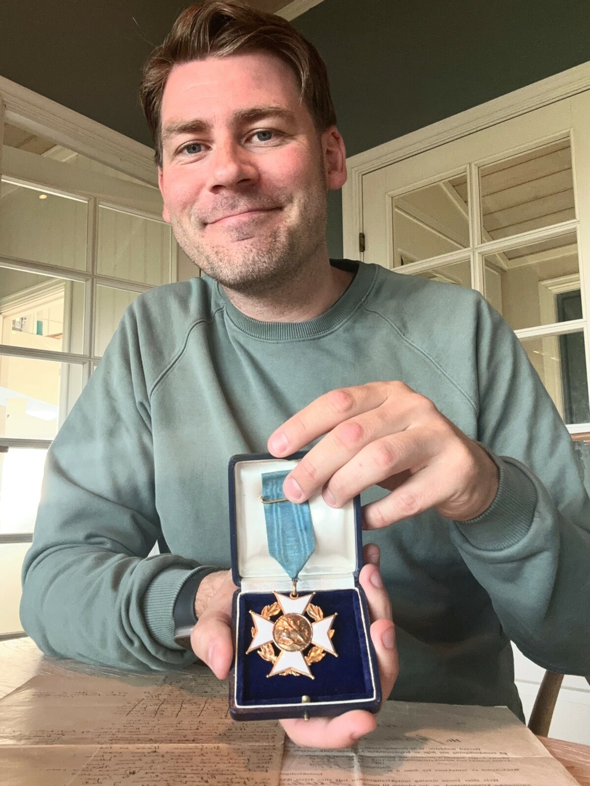 – Og så sat vi her for to veker sidan, og prata om medaljen, og så ringer telefonen. Og då er det eigaren av medaljen som har sett i avisa at vi har leita etter medaljen! Det var ein skikkeleg opptur.