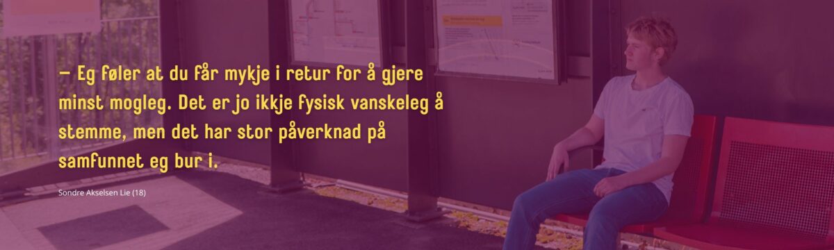 – Eg føler at du får mykje i retur for å gjere minst mogleg. Det er jo ikkje fysisk vanskeleg å stemme, men det har stor påverknad på samfunnet eg bur i.