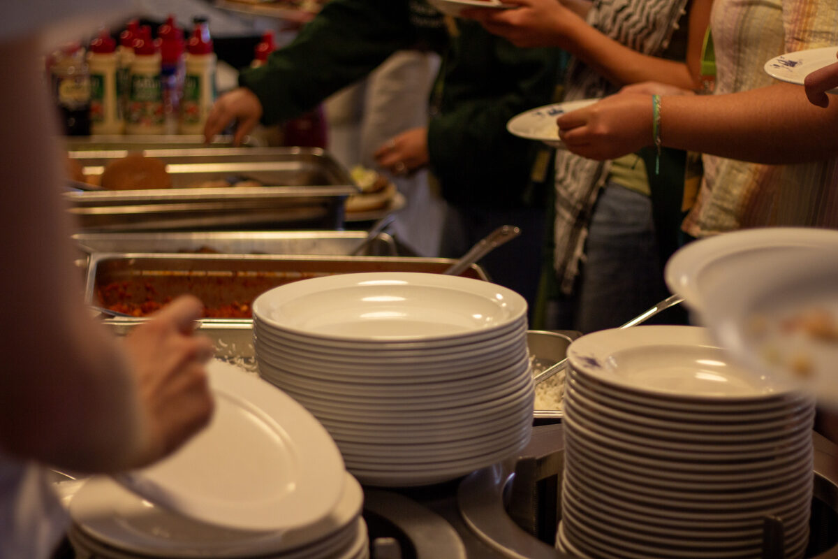 Maten som blir servert på leiren, er sjølvsagt vegetarisk, for eit mindre klimaavtrykk. Til lunsj er det bønnegryte med ris, salat og andre valmoglegheiter.