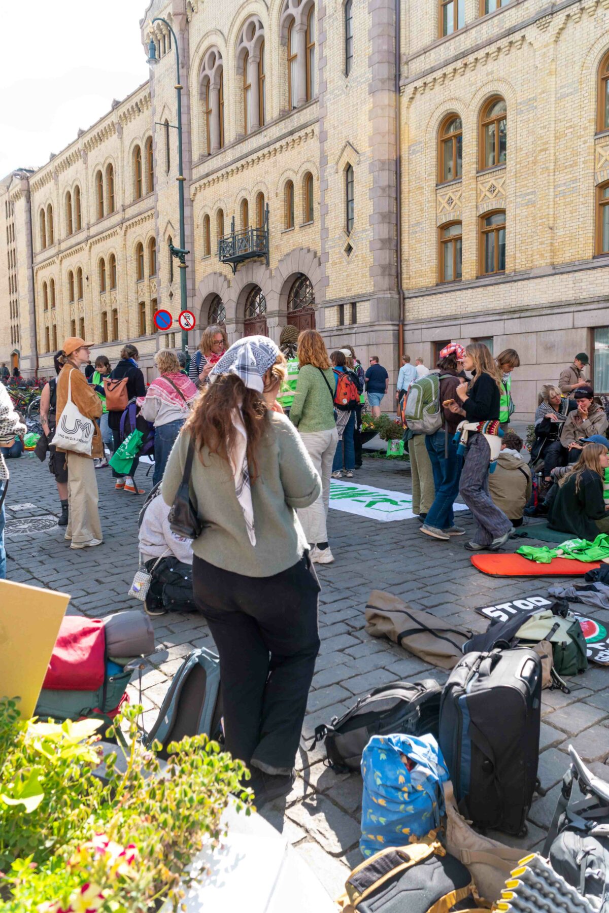 Mille Haugen er pressekontakt i Extinction Rebellion, og fortel at det var 300 påmelde til aksjonen, men trur det også kan vere fleire som er med. Aksjonen på Karl Johan kjem like etter aksjonen på oljeanlegget på Mongstad i Nordhordland, der dei blokkerte vegen inn til både sjøs og vegs. 10 personar vart melde til politiet.