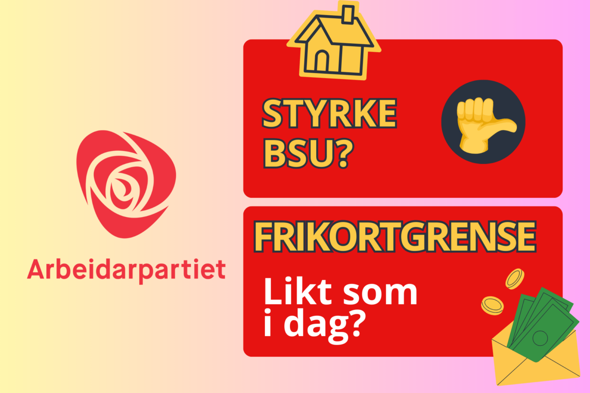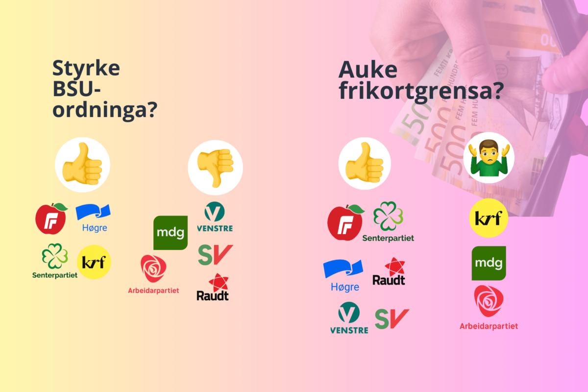 Her får du ei oversikt over kva partia vil gjere med både frikortgrensa og BSU-ordninga.