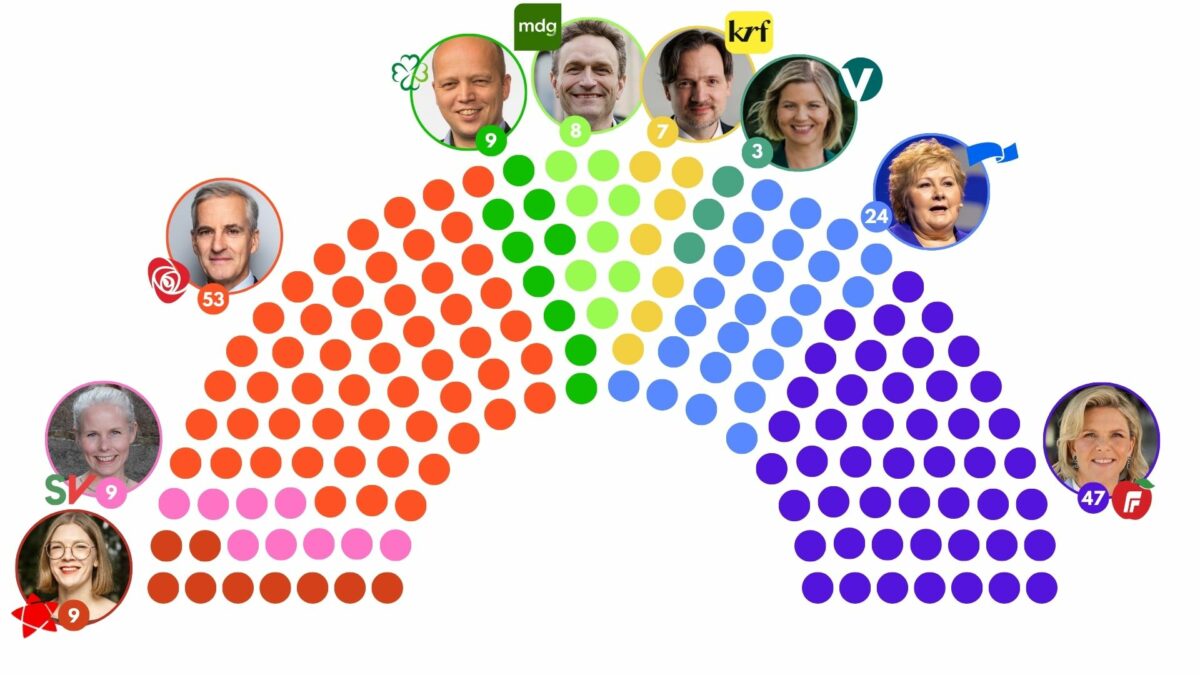 Arbeidarpartiet vart største parti i stortingsvalet, men er avhengige av støtte frå SV, Raudt, Senterpartiet og Miljøpartiet Dei Grøne for å få fleirtal i Stortinget.