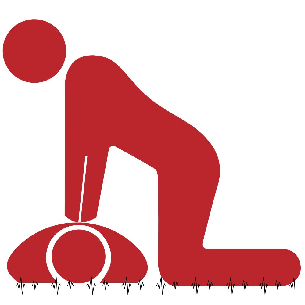 - Gjere basal hjarte-lungeredning (HLR) ved hjartestans. Trykk hardt og raskt midt på brystet til personen. 30 kompresjonar og tre innblåsingar.